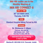 The Indian Medical Association – Hospital Board of India (IMA HBI) invites you to participate in the Monthly Meeting of IMA HBI CONNECT – JAN 2026. The session is scheduled for 9th January 2026 (Friday) at 9:00 PM and will be conducted online via Zoom.